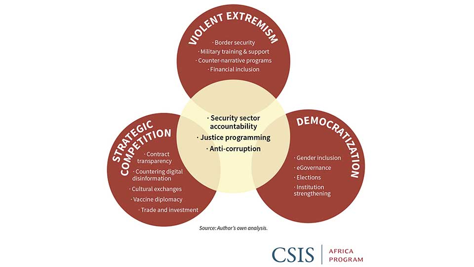 “The U.S. government is grappling with three distinct priorities—violent extremism, democratic backsliding, and strategic competition—in coastal West Africa and the Sahel,” said Judd Devermont, CSIS’ program director for Africa.