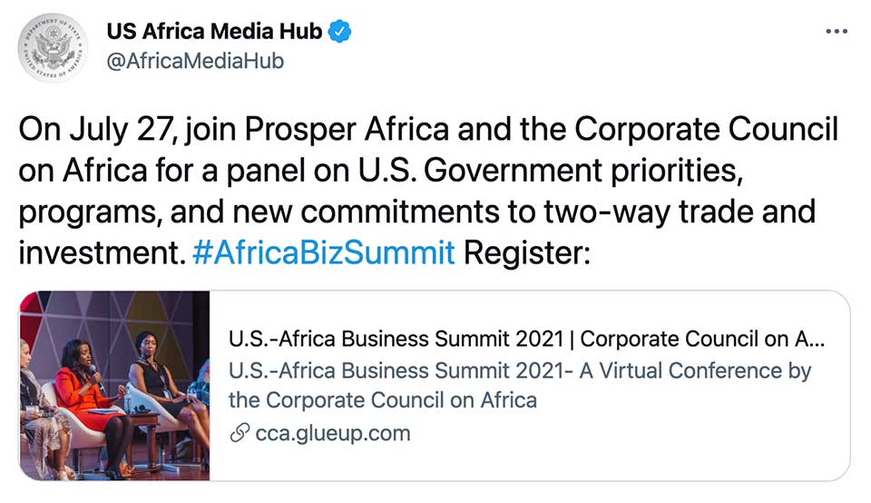 The 13th U.S.-Africa Business Summit kicked off on Tuesday with a number of online forums on issues like infrastructure development, COVID-19, and strengthening US investment on the continent. Several senior White House officials, African heads of state, and corporate leaders from both sides are taking part. Remarkably, the transcripts and reporting on the summit show that the word “China” wasn’t mentioned even once.