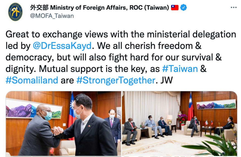 Meantime in Beijing, the Chinese Foreign Ministry is unsurprisingly not happy about the visit. The ruling Democratic Progressive Party (DPP) is “fanning the flames to undermine the independence and unification of other countries, harming others without benefiting themselves” said spokesman Zhao Lijian in response to a question about the ongoing Somaliland visit.