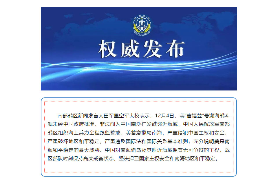 Statement by the PLA Southern Command that condemned the USS Gabrielle Giffords for entering waters near the Second Thomas Shoal in the South China Sea, an area that Beijing contends is under its jurisdiction.
