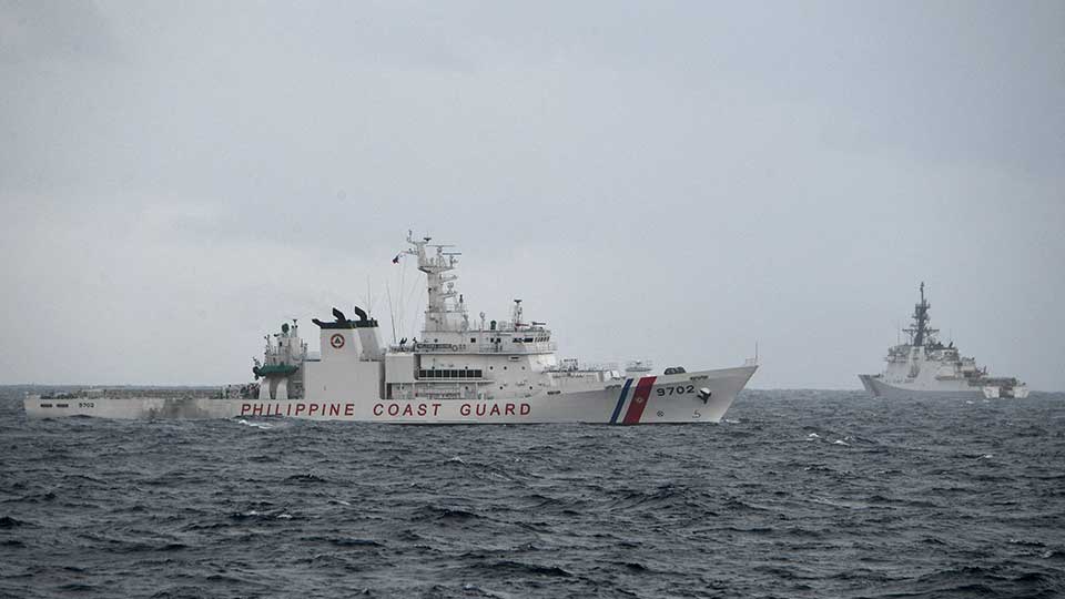 File image of Philippine coast guard ship Melchora Aquino and U.S. coast guard cutter Midgett manoeuver during a joint search and rescue exercise between the Philippine and U.S. coast guards in the vicinity of the South China sea off Zanbales. Ted ALJIBE / AFP