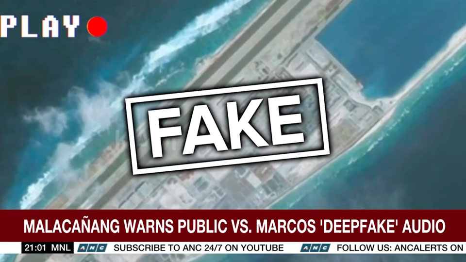 The audio on the clip was made using artificial intelligence to sound like Marcos giving orders for the military to attack Chinese vessels and outposts in the South China Sea.