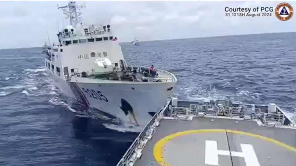 A China Coast Guard vessel collided with a Philippines ship near the disputed Sabina Shoal on August 31, 2024. Image via the Philippine Coast Guard.