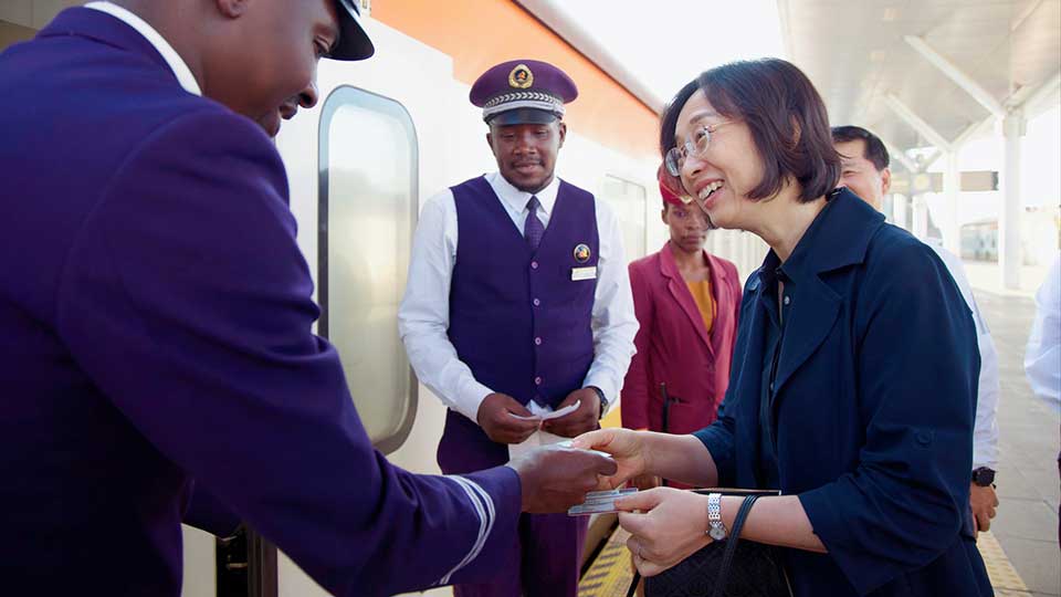 Newly-arrived Chinese ambassador to Kenya Guo Haiyan traveled for the first time on the Chinese-financed and built Standard Gauge Railway on February 22, 2025. Image via @ambguohaiyan