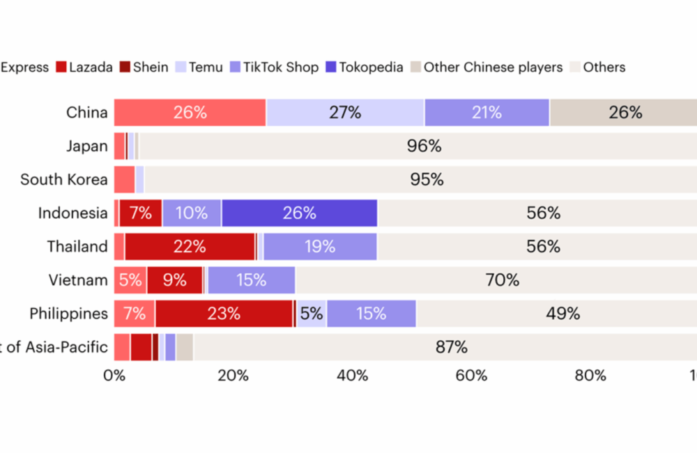 Chinese e-commerce companies are solidifying their dominance of Southeast Asia’s rapidly expanding online shopping market, accounting for as much as half of business-to-consumer e-commerce, according to a new study by the consulting firm Bain.
