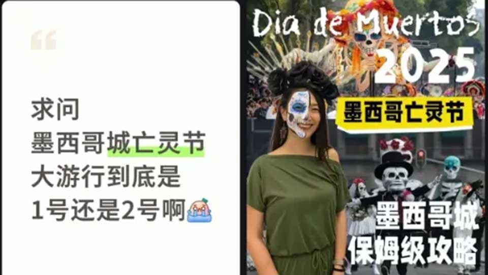 The story, published by Lvjie News, a popular travel-focused WeChat account, follows a Chinese writer diving into the chaotic energy of the festival –from packed parades and traffic-stopping protests to late-night dance parties at Mixquic cemetery– only to find Mandarin spoken everywhere. Through vivid scenes and conversations with young Chinese travelers, Lvjie News traces how Mexico’s most iconic festival has risen to the top of China’s travel bucket list.