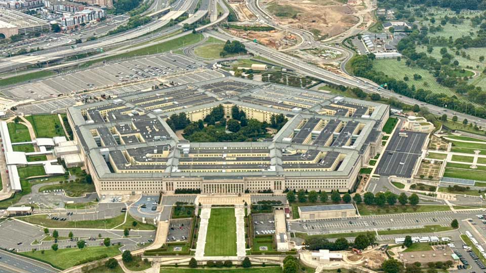 Aerial view of the Pentagon in Washington, DC, on September 20, 2025. Photo by DANIEL SLIM / AFP