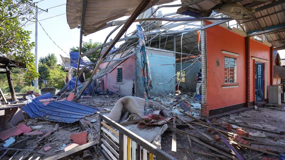 This picture shows a house damaged after Thai military strikes in Cambodia's Banteay Meanchey province on December 16, 2025, amid clashes along the Cambodia-Thailand border. Thailand said on December 16 that Cambodia must be first to announce a truce to halt fighting between the two nations after more than a week of deadly clashes in a reignited border conflict.