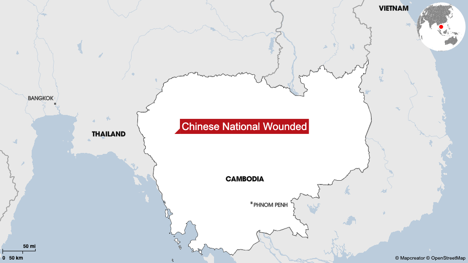 A Chinese national was wounded by Thai military shelling into Cambodia on Monday, Phnom Penh’s interior ministry said, as the Southeast Asian neighbors waged deadly border clashes.