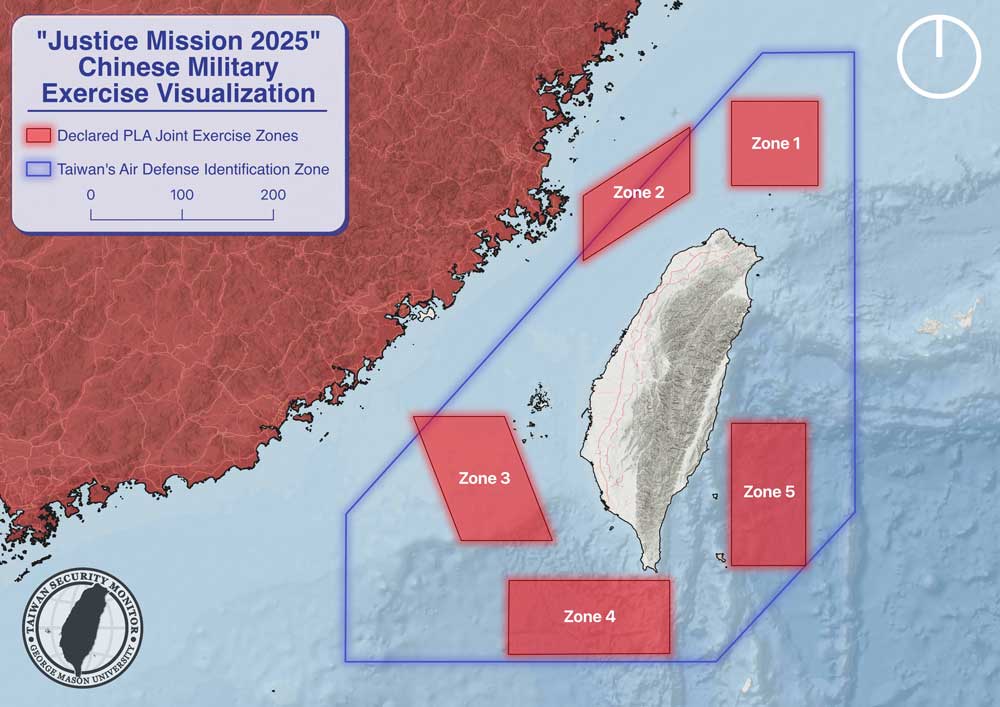 A military spokesman said earlier that Beijing would send army, navy, air force, and rocket force troops for “major military drills” code-named “Justice Mission 2025”.