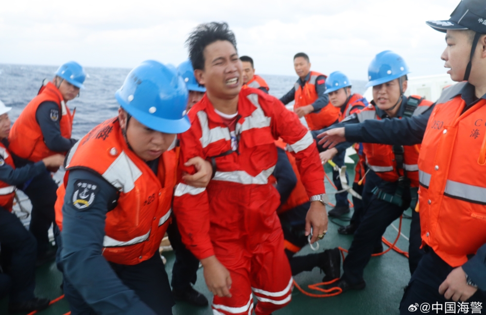 One of 13 Filipino fishers rescued by the China Coast Guard on January 23, 2025 near the disputed Scarborough Shoal. Image via the China Coast Guard.