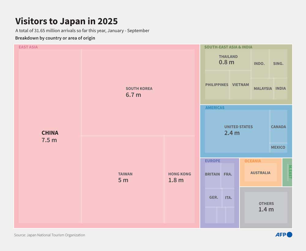 Chinese visitors once made up a quarter of all foreign tourists in Japan, with almost 7.5 million people travelling from China in the first nine months of 2025, according to official Japanese figures.