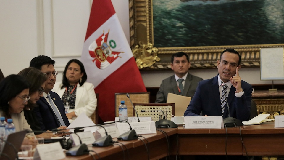 Peruvian President Jose Jeri gestures as he testifies before a congressional committee to address undisclosed meetings with Chinese businessman, Zhihua Yang, a case that has intensified scrutiny over his government's transparency and accountability, in Lima, Peru, January 21, 2026. Photo / REUTERS/Gerardo Marin