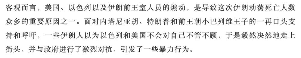 In his column of Guancha.com, Fan recorded his stay in Iran after the protest, he noted that the capital is now subject to stricter social controls, including tighter photography restrictions and expanded overseas internet bans, the remnants of buildings and shops destroyed, something that he never observed in protests before.