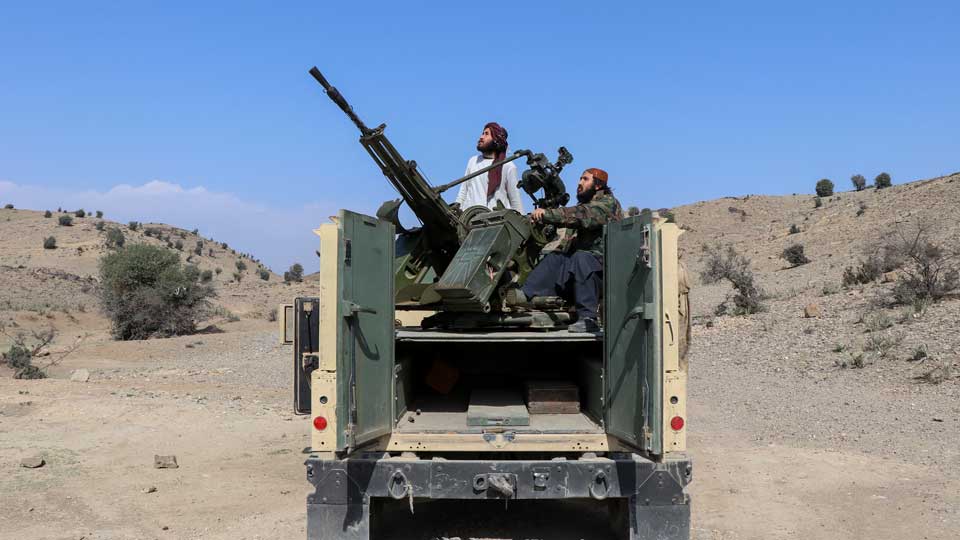 Taliban security personnel operating an anti-aircraft gun keep watch for Pakistani airstrikes near the Durand Line in Gurbuz district of Khost province on February 27, 2026 following overnight cross-border fighting between Pakistan and Afghanistan. AFP