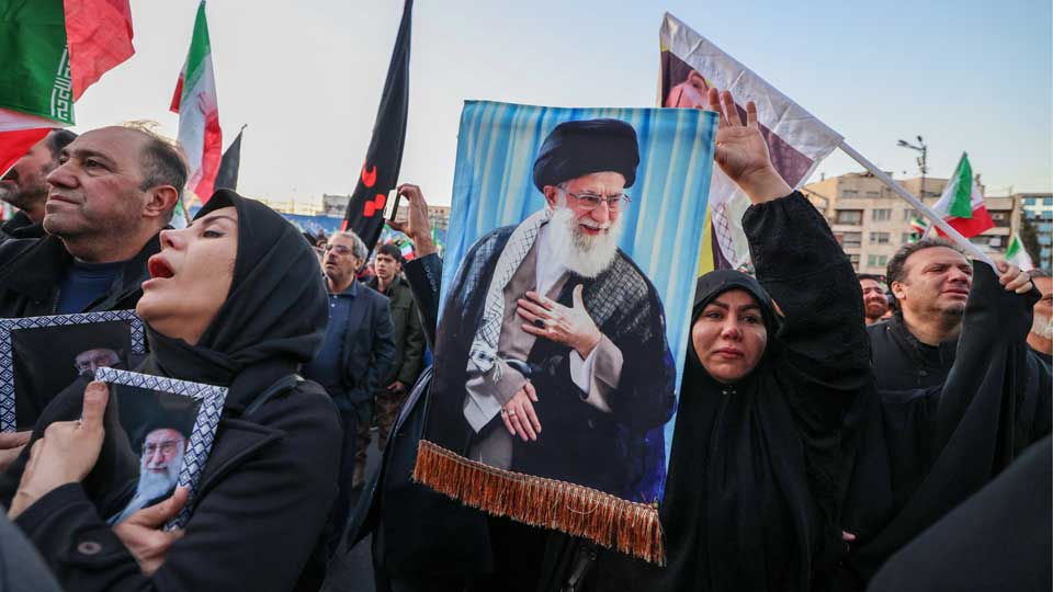 People mourn the death of Iran’s supreme leader Ayatollah Ali Khamenei, who was killed in joint US and Israeli strikes, at a square in Tehran on March 1, 2026. Photo by ATTA KENARE / AFP