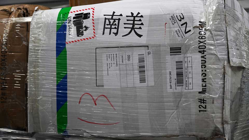 Packages are stored at Santiago's International Airport on November 12, 2024. Ultra-cheap Chinese online shops are causing concern in Latin America because of the unfair competition they pose to traditional commerce. RODRIGO ARANGUA / AFP