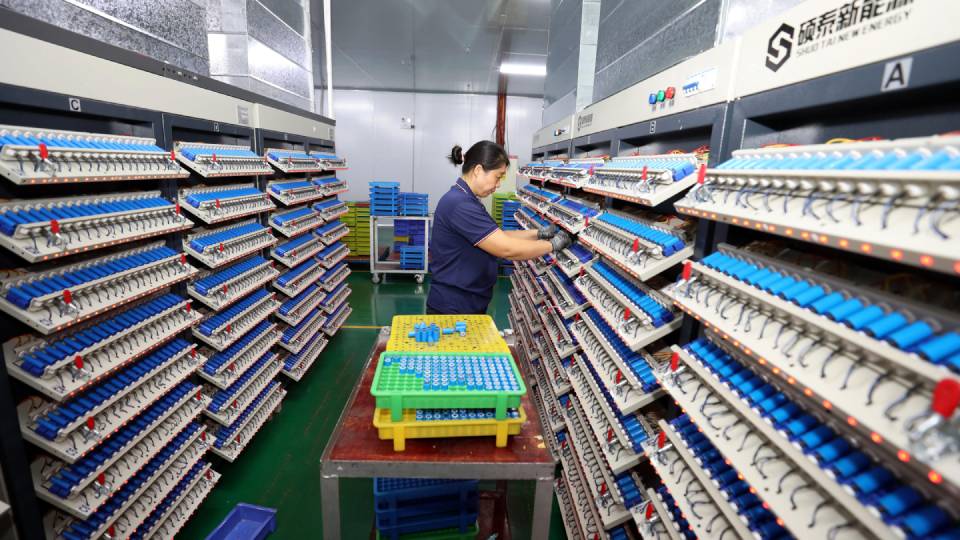 Employees work at a lithium battery factory in Huaibei City, east China’s Anhui Province, 15 November, 2025. (Photo by Li Xin / IC photo / Imaginechina via AFP)