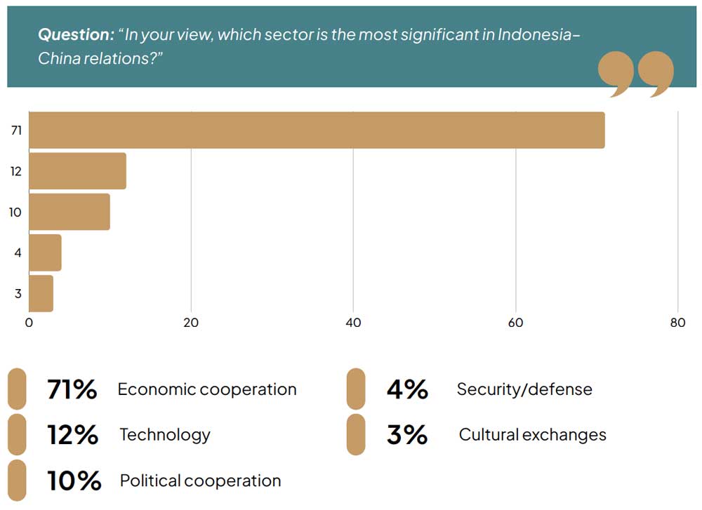 Methodological caution is warranted. As an online survey, it largely reflects the views of urban, highly educated, and Java-based respondents, with rural, lower-income, and outer-island communities underrepresented. While it cannot be taken as fully representative of all Indonesians, it remains valuable for understanding how important, digitally connected segments of society think about China.