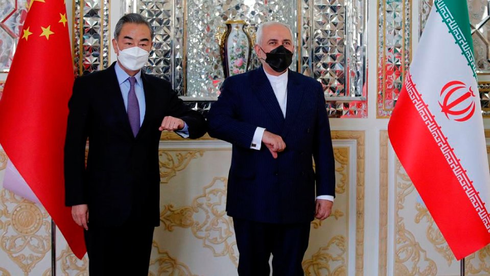 A file image of the former Iranian Foreign Minister Mohammad Javad Zarif (R) and his Chinese counterpart Wang Yi during the signing of their 25-year strategic cooperation pact in 2021.