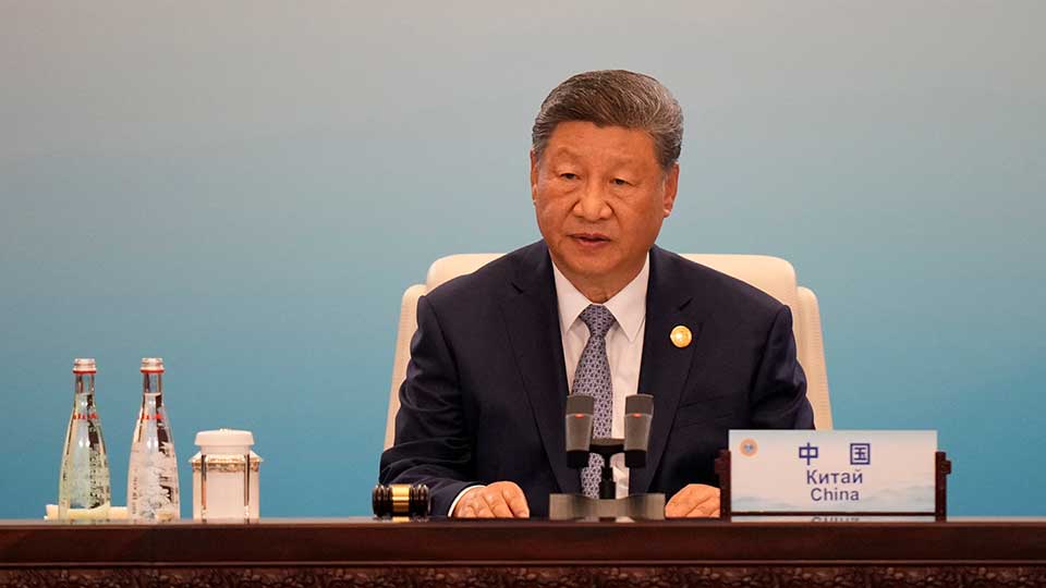 Chinese President Xi Jinping delivers a speech during the Shanghai Cooperation Organization (SCO) Summit 2025 at the Meijiang Convention and Exhibition Centre in Tianjin on September 1, 2025. (Photo by SUO TAKEKUMA / POOL / AFP)