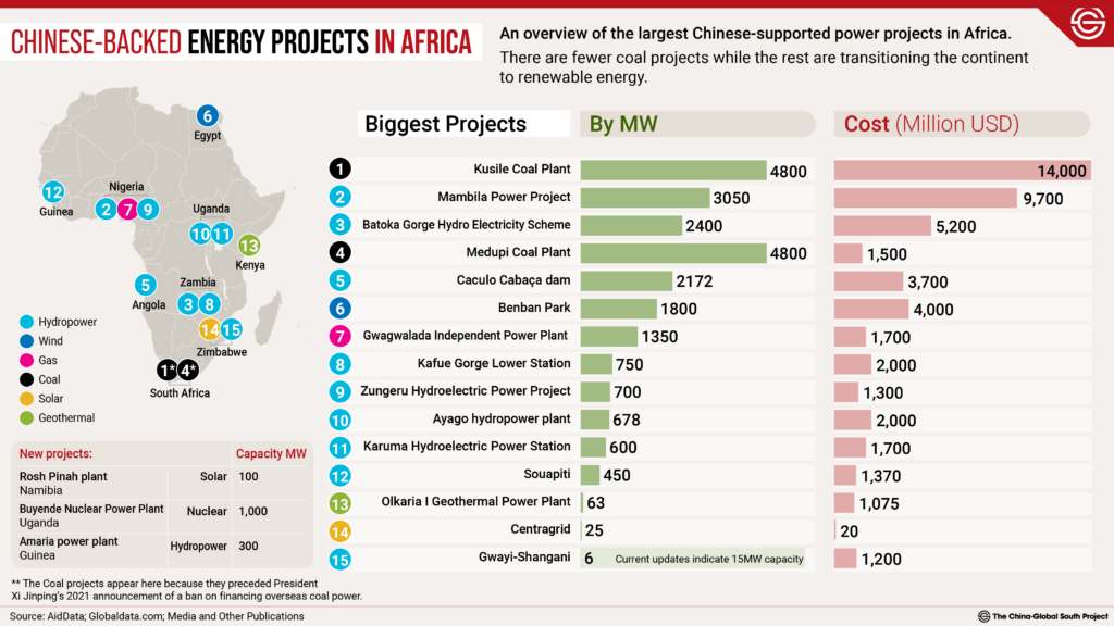 Chinese-supported power projects across Africa are increasingly concentrated in hydropower, solar, and other renewables, even as several large coal plants remain among the biggest by capacity. The current landscape of China-Africa energy projects shows that while coal is still a major part of Beijing’s energy footprint in the region, the pipeline reflects a gradual shift away from overseas coal financing.